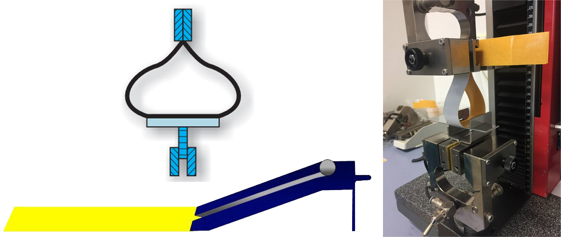 Fot. Stanowisko do badania kleistości metodą loop tack przy użyciu maszyny wytrzymałościowej