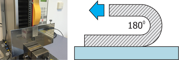 Adhezja przy odrywaniu – Adhezja taśmy samoprzylepnej jest to parametr, który określa zdolność przylegania jej do różnego rodzaju materiałów. Istnieje kilka metod pomiaru adhezji jednak najpopularniejsze to metoda odrywania taśmy od standardowej płytki pomiarowej pod kątem 180° oraz 90°. Wielkość adhezji definiuje się jako siłę potrzebną do oderwania taśmy od podłoża. Pomiaru dokonuje się na próbkach o szerokości 25mm odrywając ją ze stałą prędkością 300mm na minutę. Wynik podaje się w N na cm szerokości próbki.